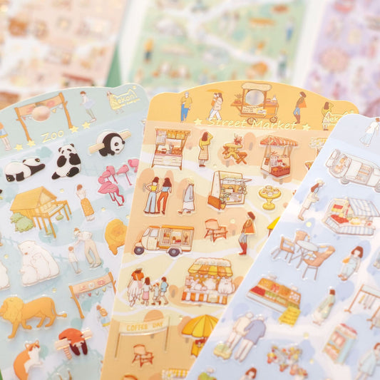 Nekoni Korean Market Zoo Coffee Shop Camping Life Stickers | Kawaii Scenes of Life Planner Stickers Junk Journal Scrapbooking Supplies