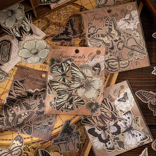 Retro Butterfly Stickers Pack | Vintage Leaf Flower Sticker Pack | Planner Bujo Junk Journal Vintage Journal Scrapbooking Sticker Supplies