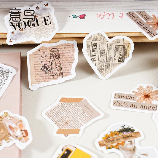 46pcs Retro Sticker Pack | Old Newspaper Camera Sculpture Stickers | Journal Scrapbooking Collage Crafting Supplies | Planner Sticker