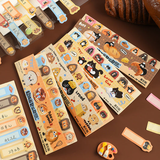 Kawaii Bread and Cat Page Marker | Sticky Notes | Cute Bread Page Flags | Page Markers | Sticky Tabs | Study School Planner Journal Supplies