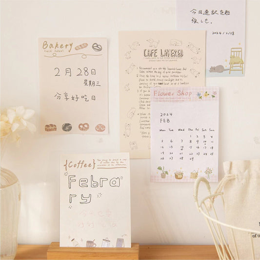 80pcs Cute Notepad | Coffee Bread Planner Memo Pad | Bakery Writing Pad | Planner Memo | Stationery Planner Journal Accessory Supplies