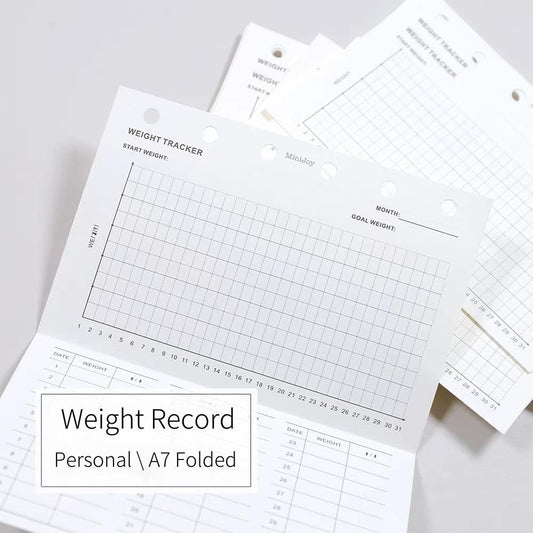 Weight Tracker Record Printed Planner Inserts | A7 Personal Size | 120gsm Paper | 6 Ring Binder Planner Refills | Health Wellness Diet