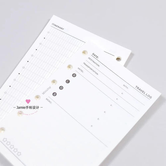 A7 Travel Plan Printed Planner Inserts | 120gsm Paper | 6 Ring Binder Planner Refills | Travel Log Record Inserts