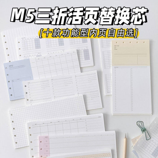 M5 Tri-fold Planner Inserts | 5 Ring Binder Inserts | Refillable Planner Refills | Daily Plan Monthly Weekly Plan Memo Inserts