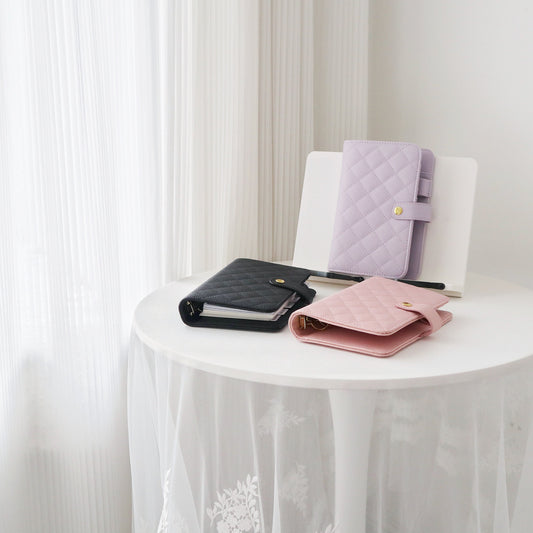 luxurious M5 Vegan Leather Plaid Cloth 5 Ring Binder | Portable Planner | Refillable Notebook Journal Planner Organizer | Gift for Her