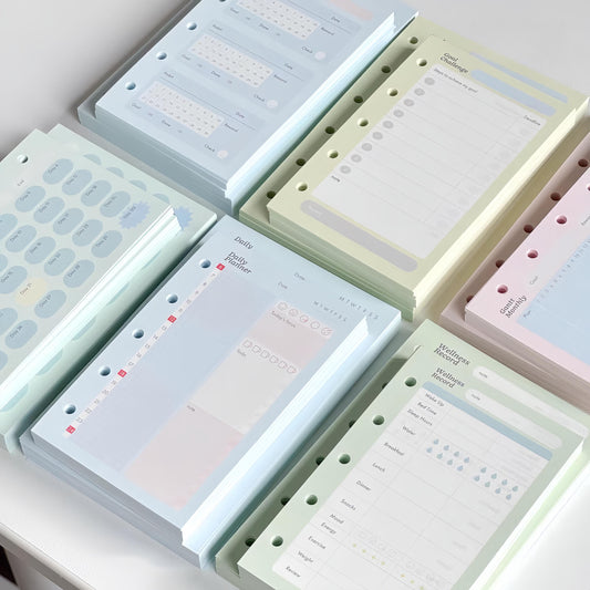 Colored A7 M5 Blank 6 Ring Printed Planner Inserts | 110gam Papers | Six Ring Binder Refill Paper | Planner loose-leaf Refills Accessories