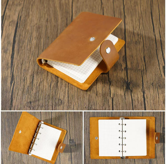 A8 Mini 100% Genuine Leather 5 Ring Binder | Pocket Portable Journal Agenda Planner | Vintage Travel Journal | Gift for Her Him