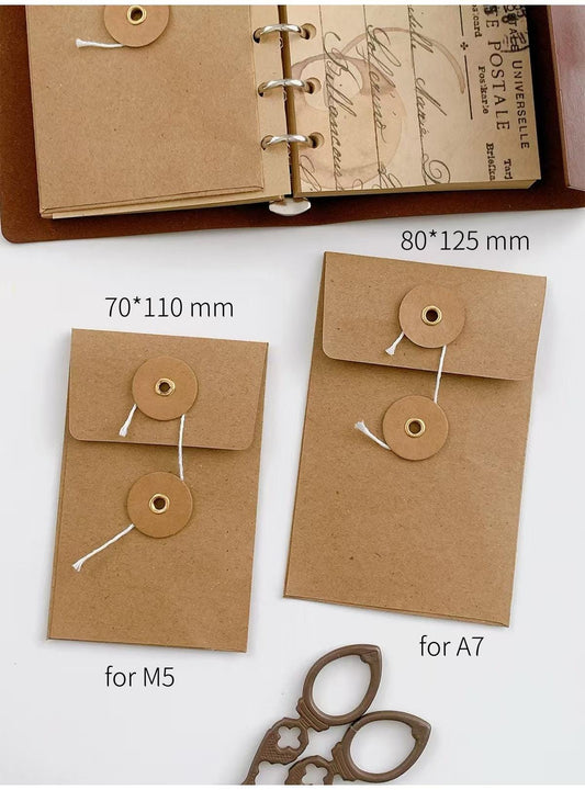 M5 A7 String Tie Envelope | Kraft Brown Paper Envelope | Binder Planner Organizer | Insert Pocket | Kraft Envelope for Planner