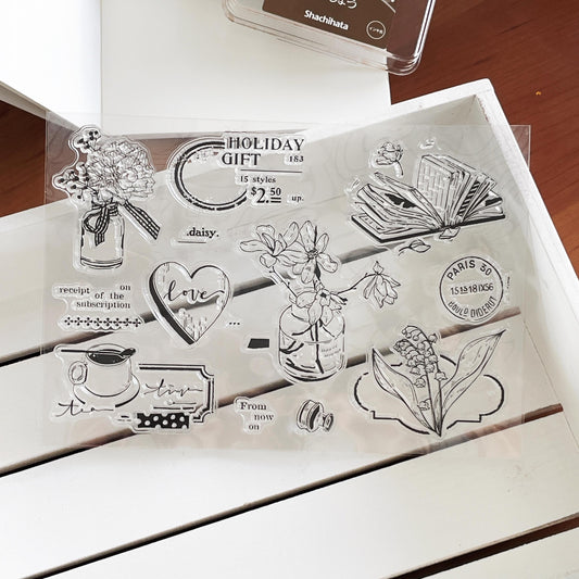 Vase Tea Book Clear Stamp | Coffee Book Lover Flower Self Care Transparent Rubber Stamps | Bullet Journal Planner Accessories Card Making