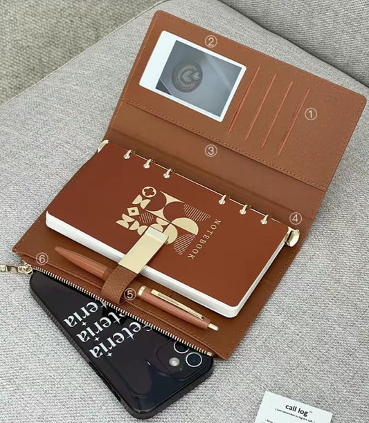 A6 Pu Leather zipper Binder Journal Notebook Loose-leaf Portable Diary Planner Organizer Business Office Notepad customizable