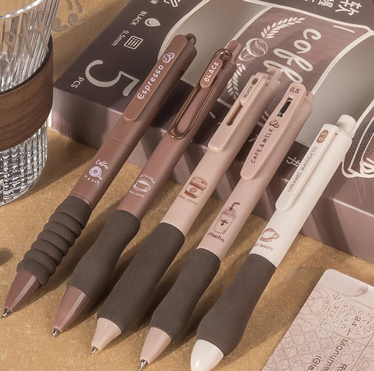 5pcs Coffee Lover Black Gel Pens | ST Smooth Writing Pens | Aesthetic Pen Set | Cute Kawaii Planner School Office Study Pens Stationery