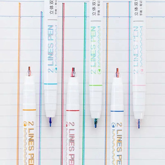 6Pcs Creative Double Line Pens | Planner Journal Pen Set | Multicolor Pen | Underline Pen | Lettering Pen | Study Supplies |