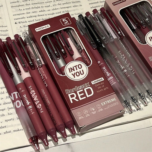 5pcs Bordeaux Red Black Gel Pens | Smooth Writing Pens | Aesthetic Pen Set | Cute Kawaii Planner School Office Study Pens Stationery