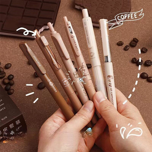 6pcs Coffee Lover Black Gel Pens | ST Smooth Writing Pens | Aesthetic Pen Set | Cute Kawaii Planner School Office Study Pens Stationery