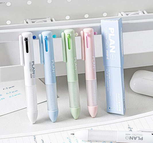 Mini Chubby Tri-Color Pen | 3-in-1 Click Pen | Gel Ink Pen 0.5mm | Bullet Journal Planner Study Note-Taking | Cute Pens | School Supplies