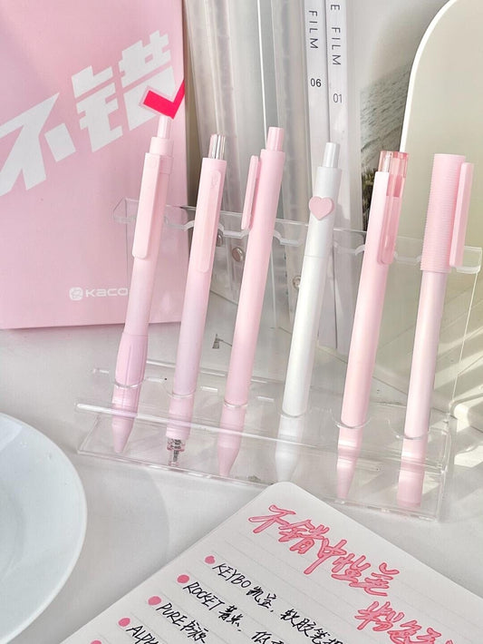 6pcs KACO Pink Gel Ink Pen Set | 0.5mm Black Ink Refill Quick-Dry Pens | Kawaii Cute Planner Pens School office Supplies Study Stationery