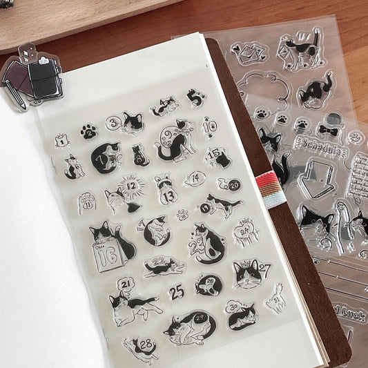 Cute Kitten Calendar Stamp | Transparent Clear Rubber Stamp Set | Scrapbooking Planner Bullet Journal Craft Card Making Journaling Supply