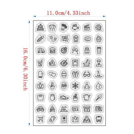 Cute Mini Icon Clear Stamp | Daily Life Weather Food Festival Travel Planner Transparent Rubber Stamps | Bullet Journal Planner Accessories