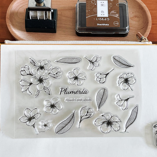 Plumeria Flower Rubber Stamp | Flora and Fauna Bloom Transparent Clear Stamp | Scrapbooking Planner Bullet Journal Stamp Supplies