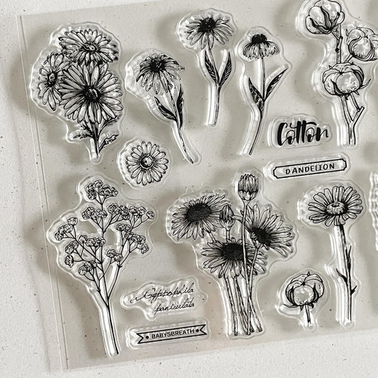Wild Flower Clear Silicone Stamp | Flora Bloom Transparent Rubber Stamps | Bullet Journal Planner Accessories Supplies Card Making