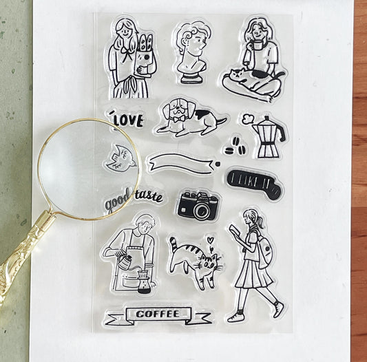 Cute Girl Coffee Lover Clear Stamp | Transparent Rubber Stamps | Bullet Journal Planner Accessories Card Making