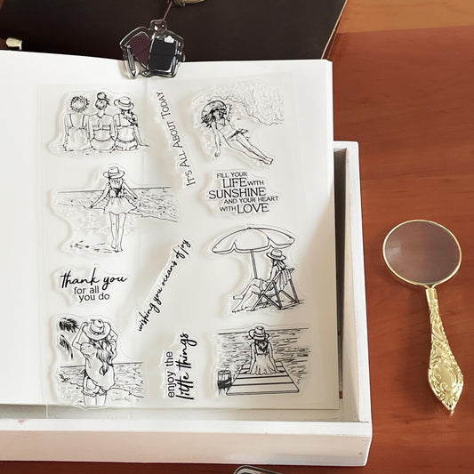 Girls on Holiday Clear Stamp | Sea Beach Sunshine Transparent Rubber Stamps | Card Making Scrapbooking Stamping Supplies