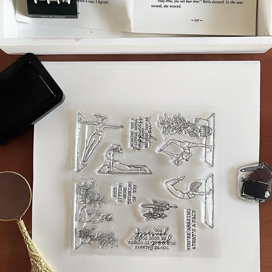 Yoga Girl Clear Stamp | Sport Exercise Girl Transparent Rubber Stamps | Bullet Journal Planner Accessories Craft Scrapbooking Supplies