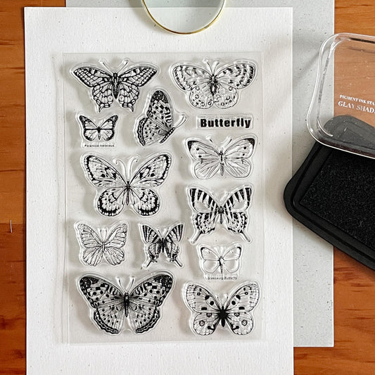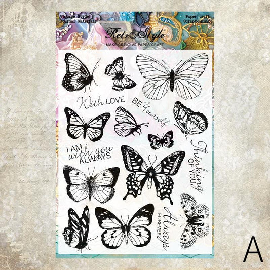 Retro Butterfly Journal Clear Stamp | Vintage Decorative Transparent Rubber Stamps | Bullet Journal Planner Accessories Supplies