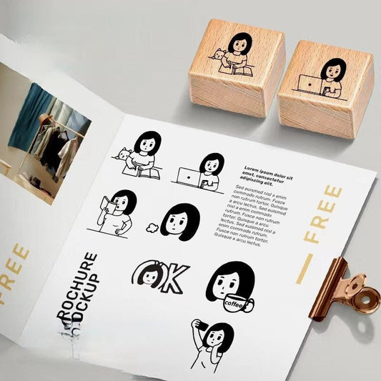 Cute Girl Daily Life Wooden Stamp | Wooden Stamp Set | Rubber Stamp | Junk Journal Scrapbooking Planner Supplies
