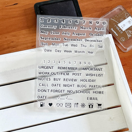 Month Week Date Calendar Clear Stamp | Daily Plan Transparent Rubber Stamps | Bullet Journal Planner Accessories Journaling Supplies