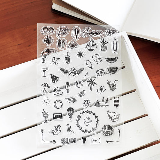 Summer Clear Stamp | Mini Icon Travel Transparent Rubber Stamps | Bullet Journal Planner Accessories