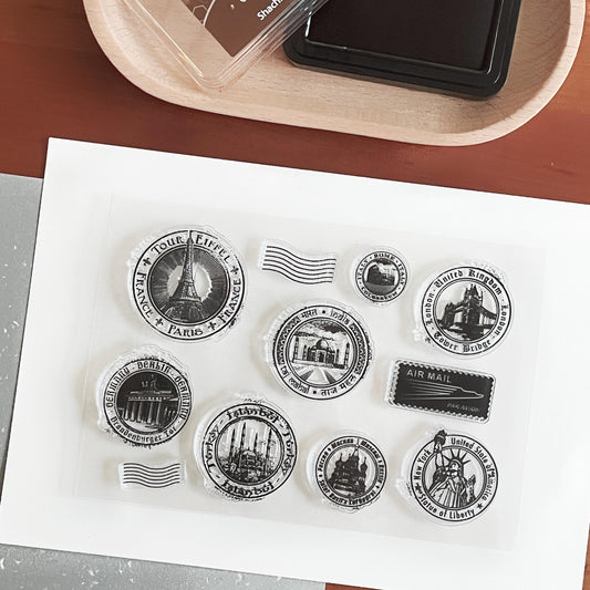City Postmark Journal Clear Stamp | Vintage Postcard Decorative Transparent Rubber Stamps | Bullet Journal Planner Accessories Supplies