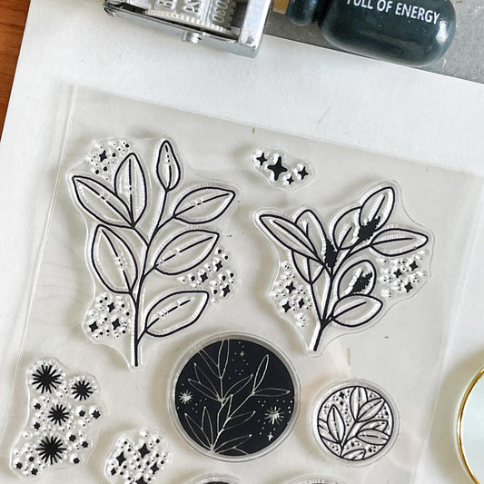 Moon and Leaf Clear Stamp | Botanicals Transparent Rubber Stamps | Bullet Journal Planner Accessories Card Making