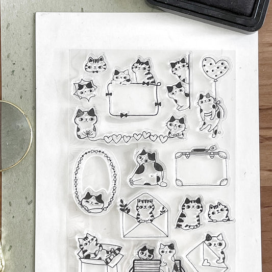 Cute Cat Clear Stamp | Lover Couple Transparent Rubber Stamp Set | Planner Bullet Journal Journaling Supply TN Accessories