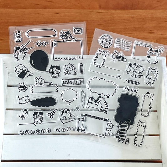 Cute Kitten Cat Clear Stamp | Daily Plan Memo Transparent Rubber Stamp Set | Planner Bullet Journal Journaling Supply TN Accessories