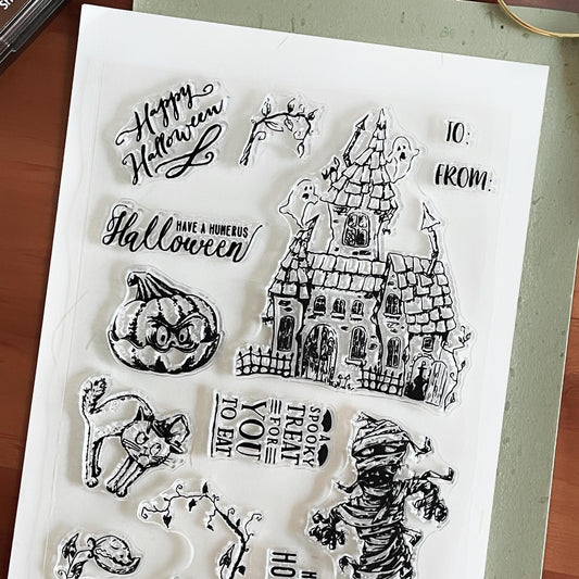 Halloween Journal Clear Stamp | Pumpkin Ghost Transparent Rubber Stamps| Card Making Scrapbooking Stamping Supplies