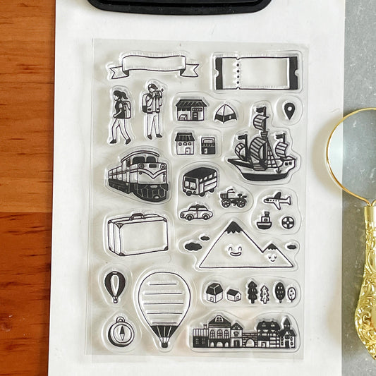 Travel Clear Stamp | Transportation Transparent Rubber Stamps | Bullet Journal Planner Traveler's Notebook Accessories Card Making