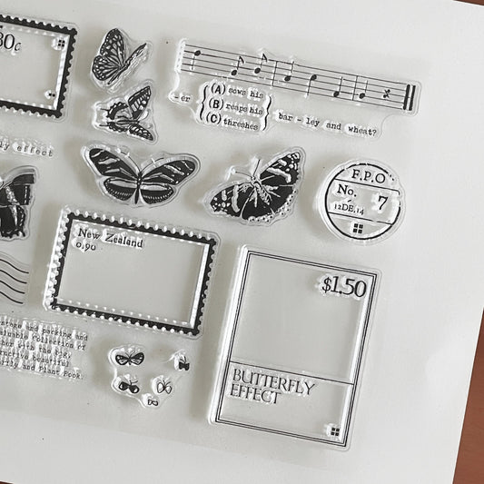 Butterfly Postmark Journal Clear Stamp | Vintage Postage Decorative Transparent Rubber Stamps | Bullet Journal Planner Accessories Supplies