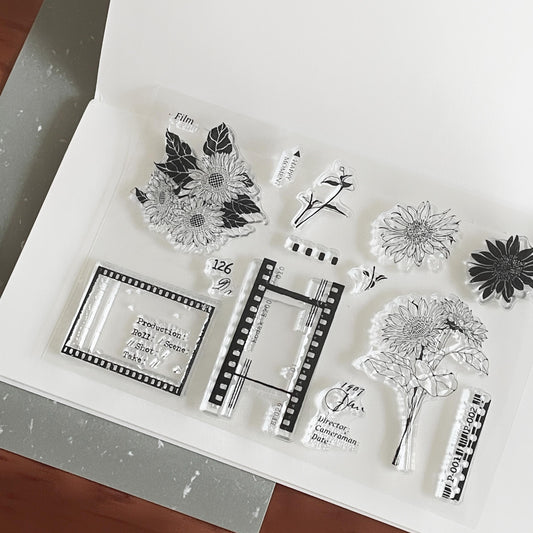 Sunflower Film Journal Clear Stamp | Nature Floral Bloom Decorative Transparent Rubber Stamps | Bullet Journal Planner Accessories Supplies