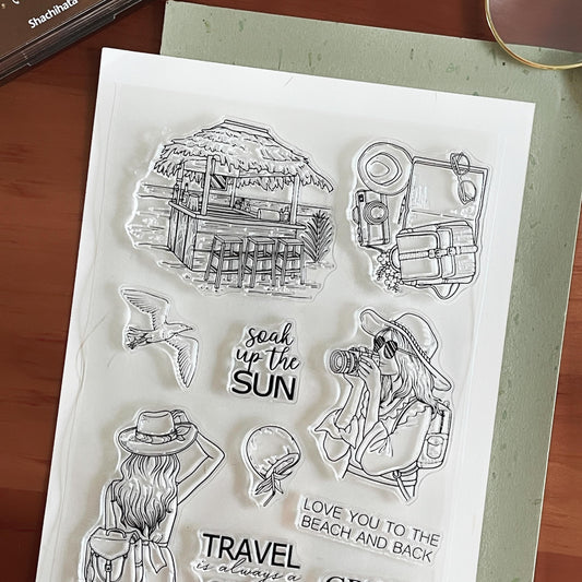 Traveling Girl Clear Stamp | Travel Lover Transparent Rubber Stamps | Bullet Journal Planner Accessories Craft Scrapbooking Supplies