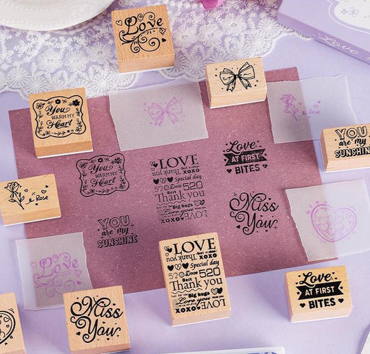 Valentine's Day Rubber Stamp Set | Love Rose Heart Wooden Stamp Set | Valentine Wedding Gif t Wrapping | Gift for Her