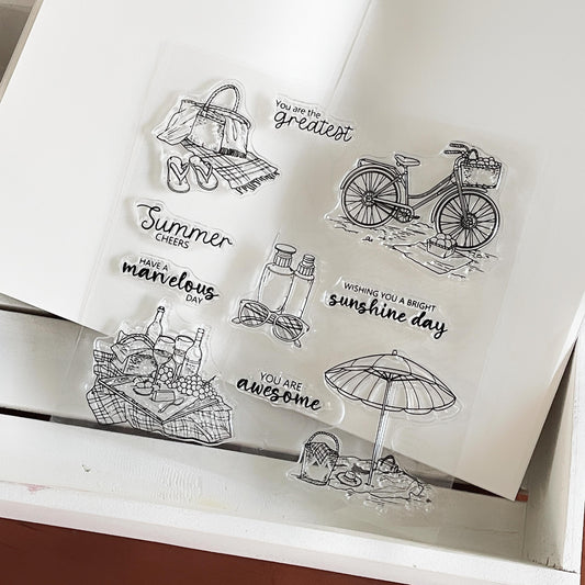 Picnic-themed Journal Clear Stamp | Summer Bicycle Life Aesthetics Transparent Rubber Stamps | Bullet Journal Planner Accessories Supplies