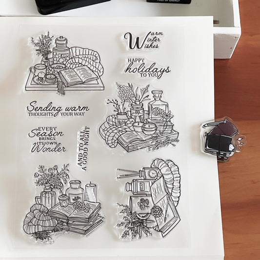 Cozy Winter Autumn HolidayJournal Clear Stamp | Reading Book Self Care Craft Transparent Rubber Stamps | Card Making Scrapbooking Supplies