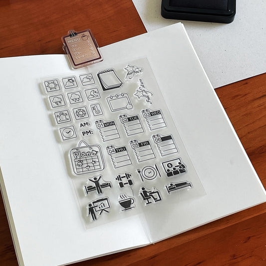 Month Week Date Icon Calendar Clear Stamp | Daily Plan Transparent Rubber Stamps | Bullet Journal Planner Accessories Journaling Supplies