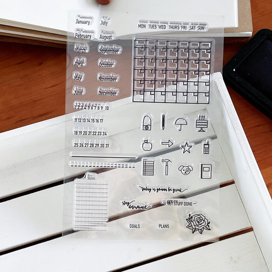 Month Week Date Calendar Clear Stamp | Daily Plan Transparent Rubber Stamps | Bullet Journal Planner Accessories Journaling Supplies