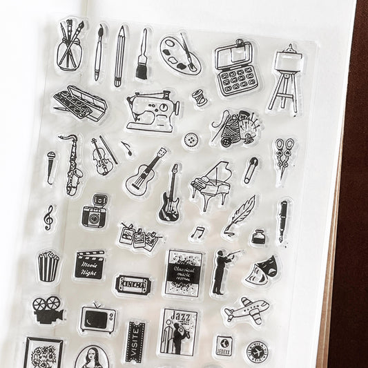Hobby Clear Stamp | Mini Icon Arts Painting Music Crafts Movie Travel Transparent Rubber Stamps | Bullet Journal Planner Accessories