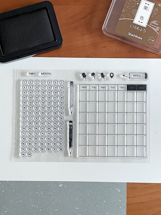 Habit Tracker Calendar Clear Stamp | Monthly Plan Transparent Rubber Stamps | Time Tracker | Bullet Journal Schedule Planner Supplies