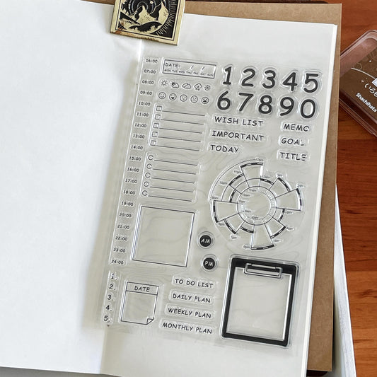 Daily Plan Time Pie Chart Clear Stamp | Timeline Checklist Weather Transparent Rubber Stamps | Bullet Journal Planner Accessories