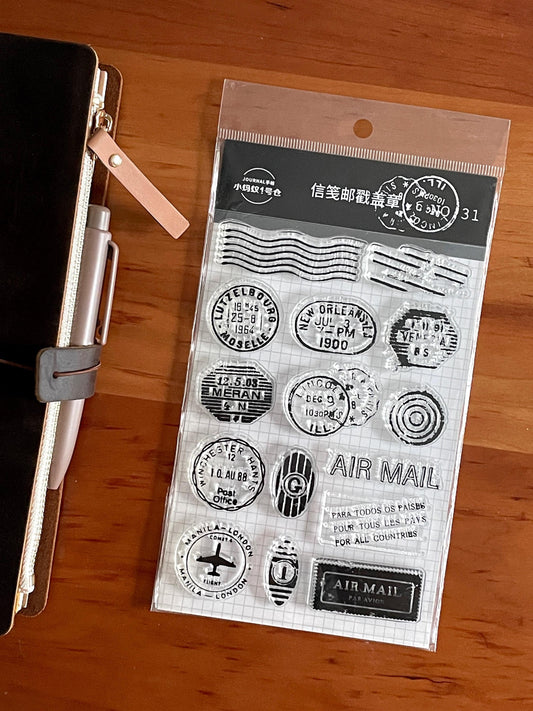 Retro Airmail Postmark Clear Stamp | Transparent Rubber Stamps | Vintage Bullet Journal Planner Craft DIY Supplies