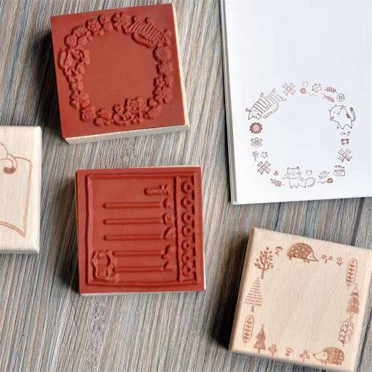 Animal Cat Wooden Rubber Stamp | Cute Memo List Book Wreath Stamp | Planner Accessories | Stamp for Journal and Scrapbook